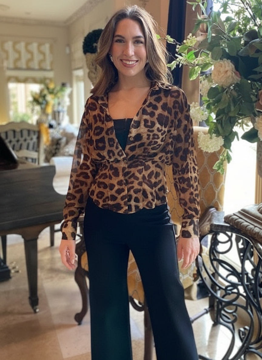 FIERCE CHARM SISTER MARY LEOPARD PRINT BLOUSE