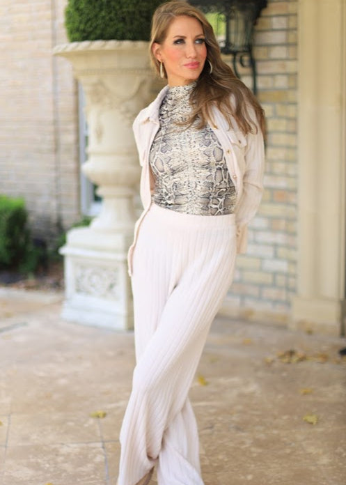 ONLINE EXCLUSIVE: FOR GOODNESS SNAKE PRINT KNIT TOP