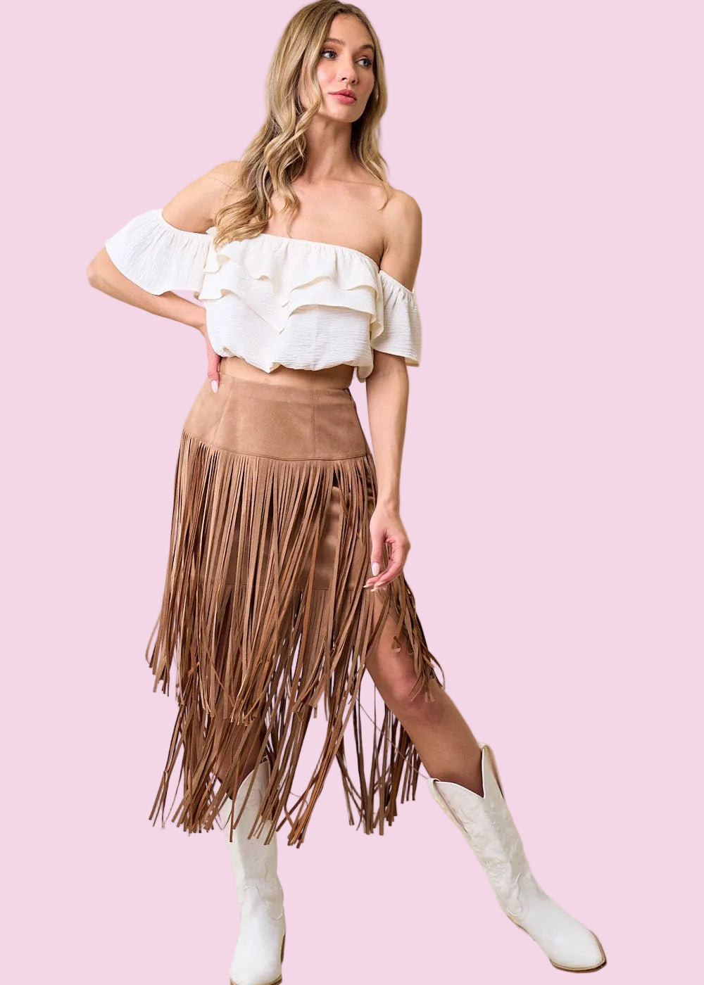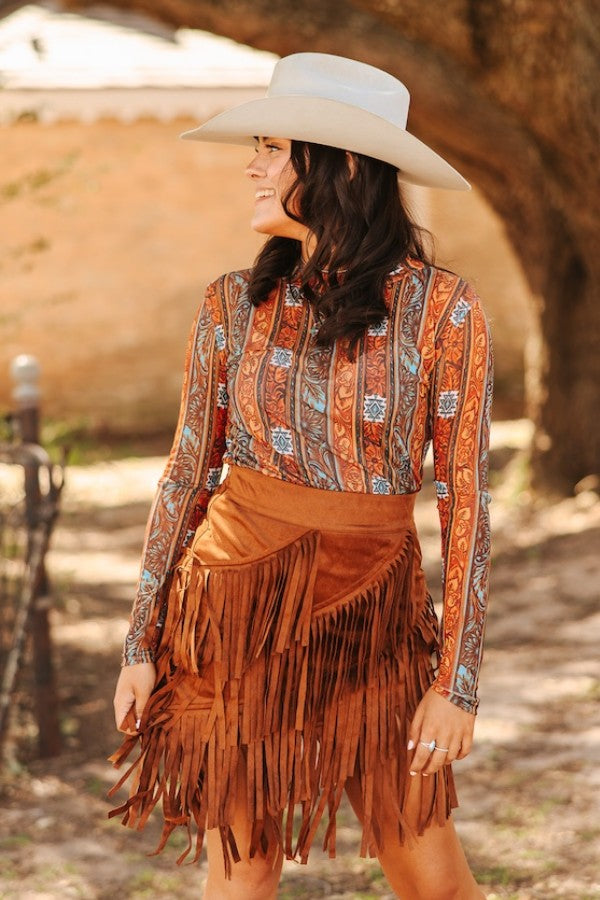 DANCE THE NIGHT AWAY FAUX SUEDE FRINGE SKIRT - BLACK OR CARAMEL