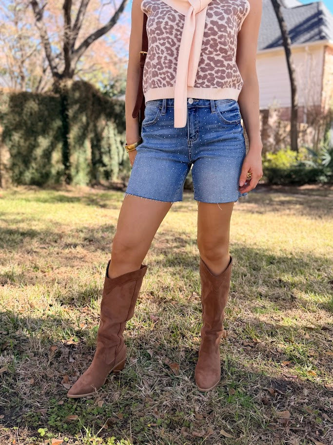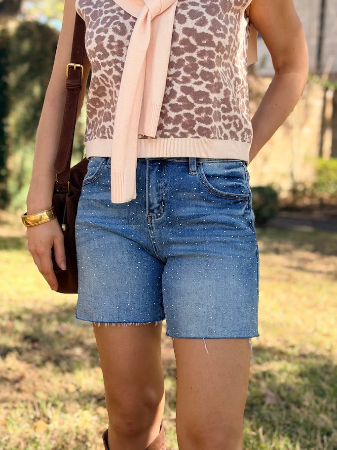 RISEN SLOUCHY RHINESTONE SHORTS