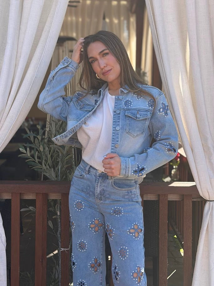 CITY CHIC EMBELLISHED DENIM HIGH RISE STRAIGHT JEANS