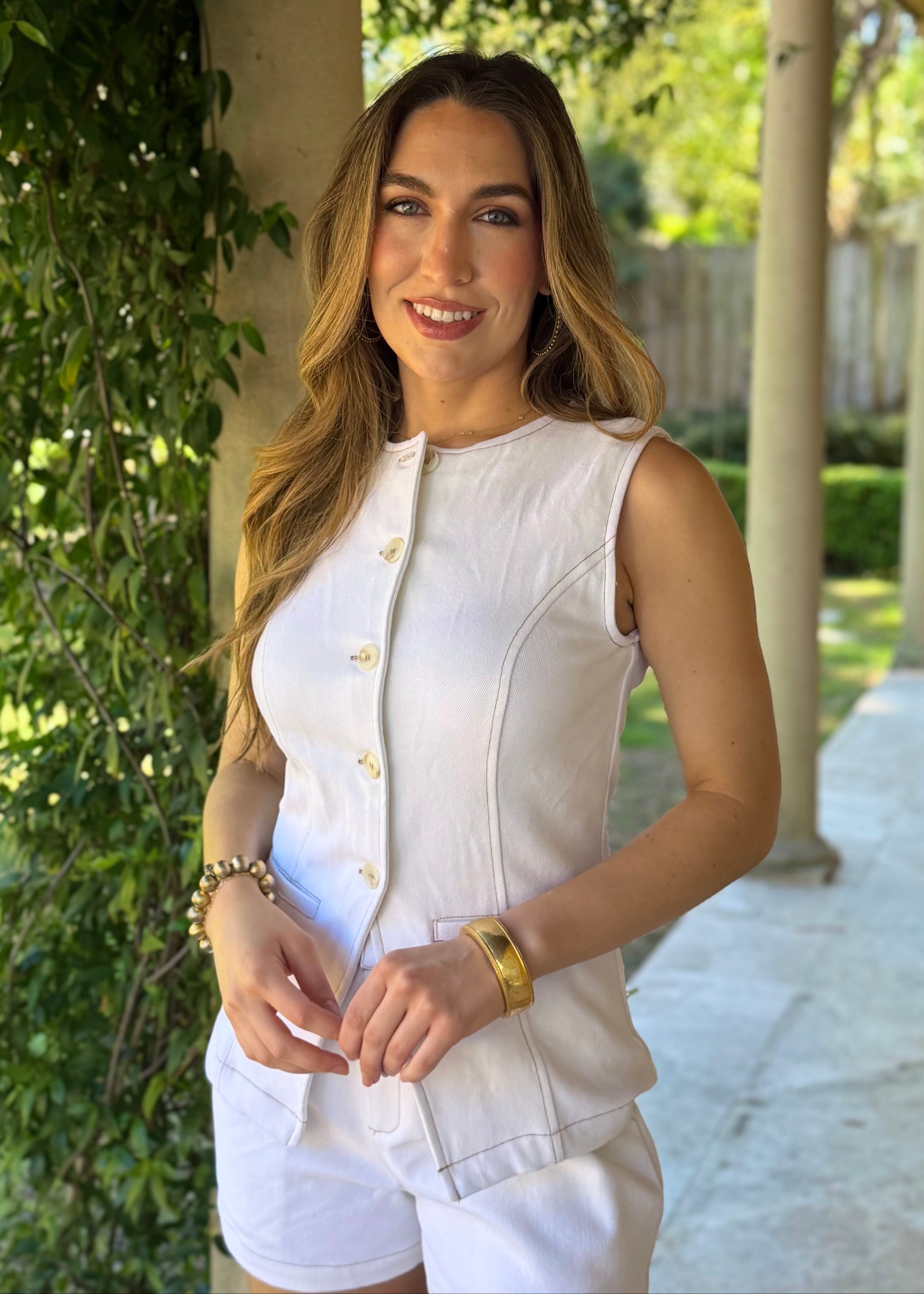 EVENING STROLLS WHITE DENIM SHORTS