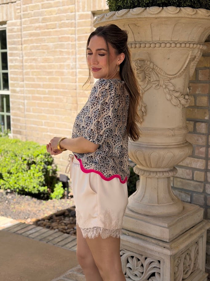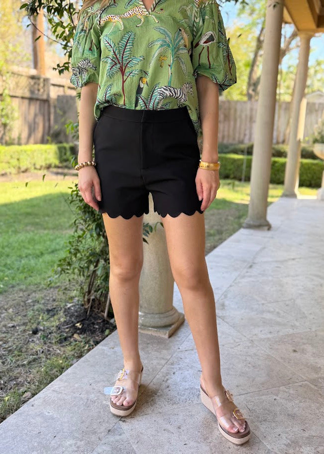 LOFT PARTY SCALLOP HEM SHORTS - BLACK OR OFF-WHITE