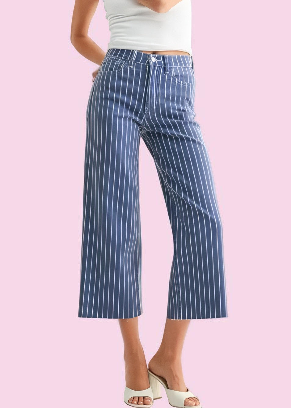 JUST BLACK SCISSOR CUT WIDE LEG NAVY STRIPE JEANS