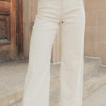RISEN JEANS - HIGH RISE CROP WIDE JEANS IN IVORY