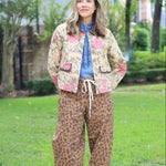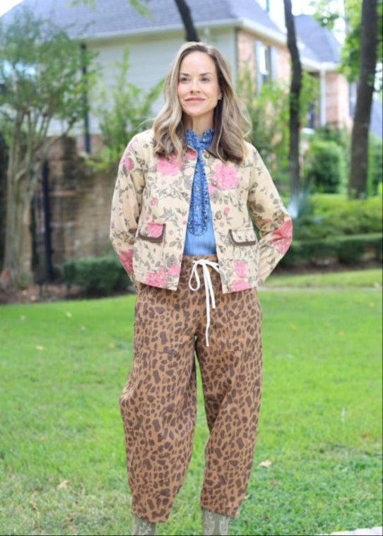 The CONCRETE JUNGLE LEOPARD PRINT PANTS bring wild style with their bold abstract leopard design. These mid-rise balloon pants end at the ankle and feature a comfy pull-on fit with an elastic back waistband plus an adjustable drawstring in front. Equipped with practical patch pockets on both sides, they’re perfect for carrying your must-haves in style.