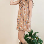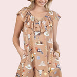 Introducing the SOUTHERN BELLE GRAPHIC PRINT DRESS—sleeveless and A-line, featuring a fun double ruffle neckline and handy pockets to keep your must-haves close.