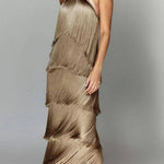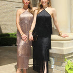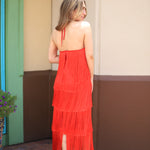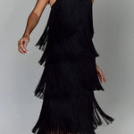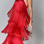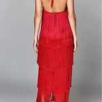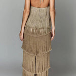 ABSOLUTELY BREATHTAKING FRINGE HALTER MAXI DRESS - BLACK, KHAKI OR RED