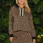 Embrace bold style with the LEOPARD LOVE ANIMAL PRINT TOP! This long-sleeve knit features a half-zip collar and ribbed band accents, enhanced by striking leopard print and contrasting stripes. Complete your outfit by pairing it with the matching skirt for a flawless, fashionable ensemble.