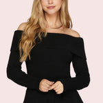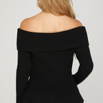 The SWEETEST DIRECTION OFF SHOULDER PEPLUM SWEATER showcases an elegant off-shoulder design with a peplum hem, offering both comfort and a fashionable shape that enhances your feminine charm.