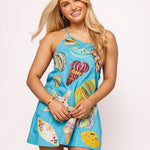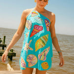 QUEEN OF SPARKLES AQUA MULTI SHELL ONE SHOULDER DRESS