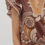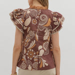 Embrace casual with the KIND SOUL COTTON PAISLEY PRINT BLOUSE, featuring a delicate ruffle collar and fluttering butterfly sleeves accentuated by contrasting piping for a striking finish.
