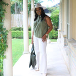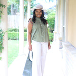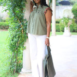 BISTRO CUTIE OLIVE FLUTTER SLEEVE BLOUSE