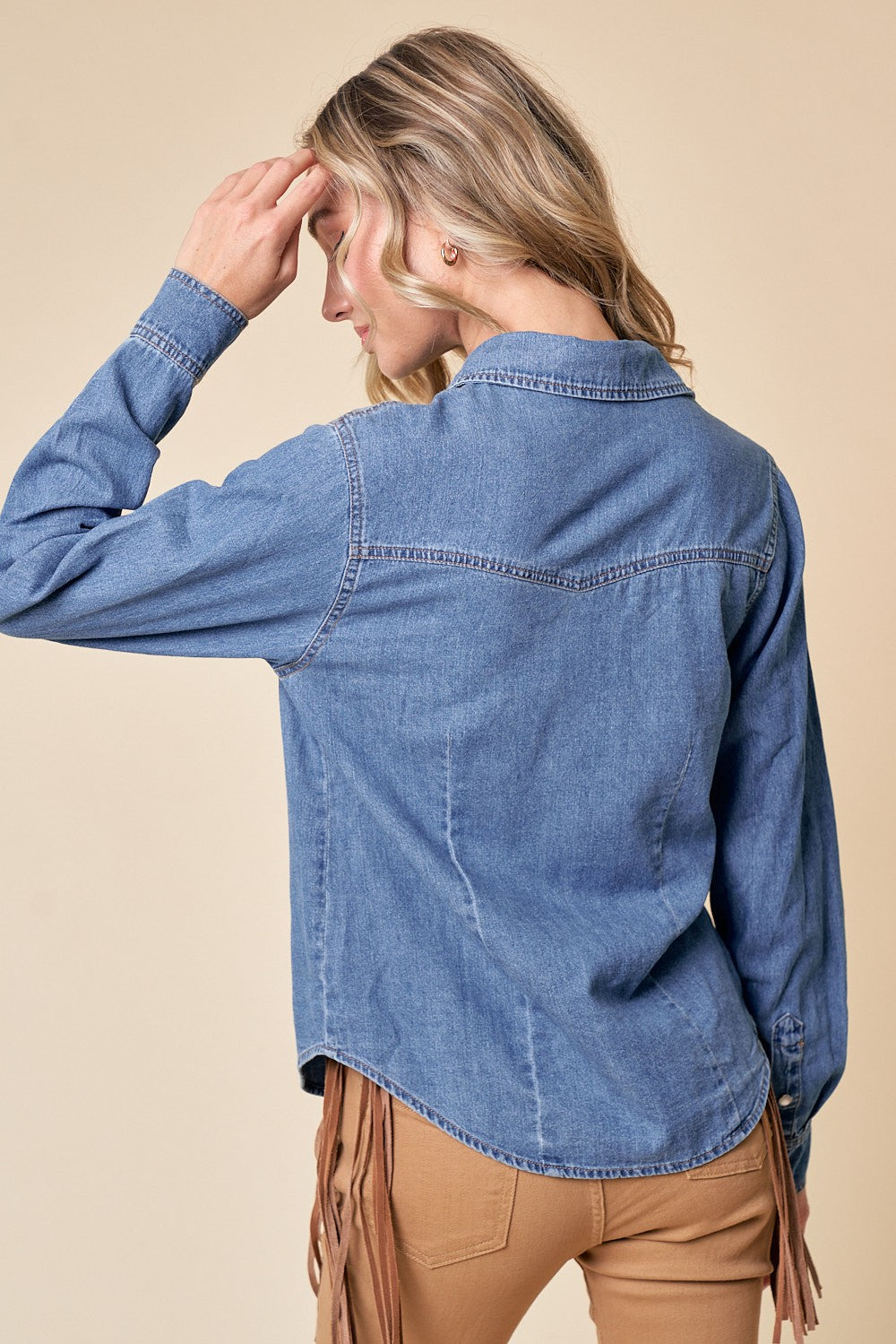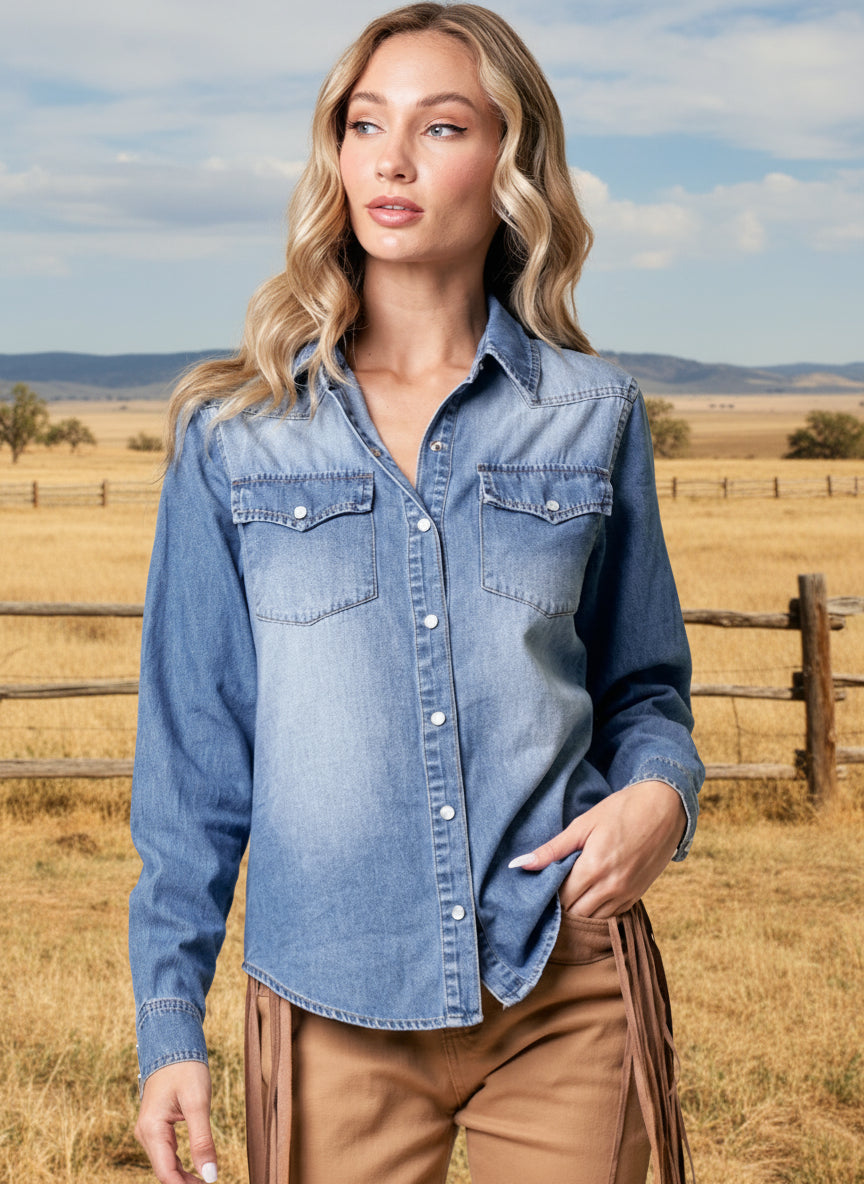 SMALL TOWN CUTIE LIGHT DENIM SHIRT