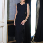 GLAMOUR GIRL BLACK DRAPED MAXI DRESS