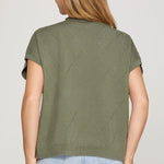 Experience effortless style with the CASUAL CUES DROP SHOULDER SWEATER. Featuring an olive hue and classic argyle design, this short-sleeve sweater with a drop shoulder and mock neck adds a chic, relaxed vibe to your wardrobe.