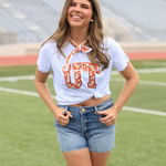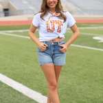 Show off your sparkle with the QUEEN OF SPARKLES JEWELED UT SHIRT. This grey crewneck tee features short sleeves and dazzling rhinestone accents that add a fun, glittery touch to your game day look.