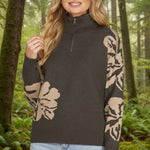 BRISK STROLL QUARTER ZIP FLORAL SWEATER