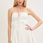 DOWNTOWN CHIC WHITE STRAPLESS PLEATED DRESS