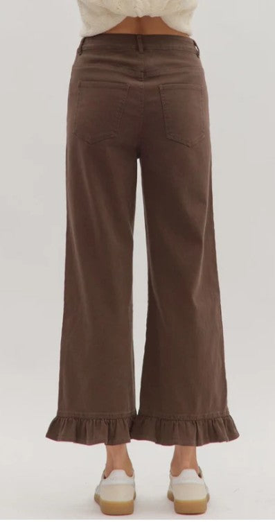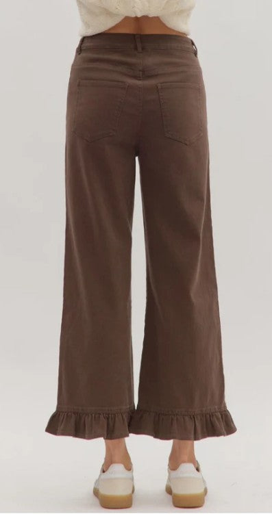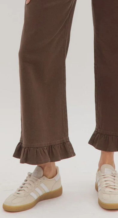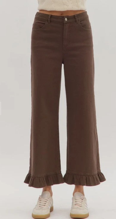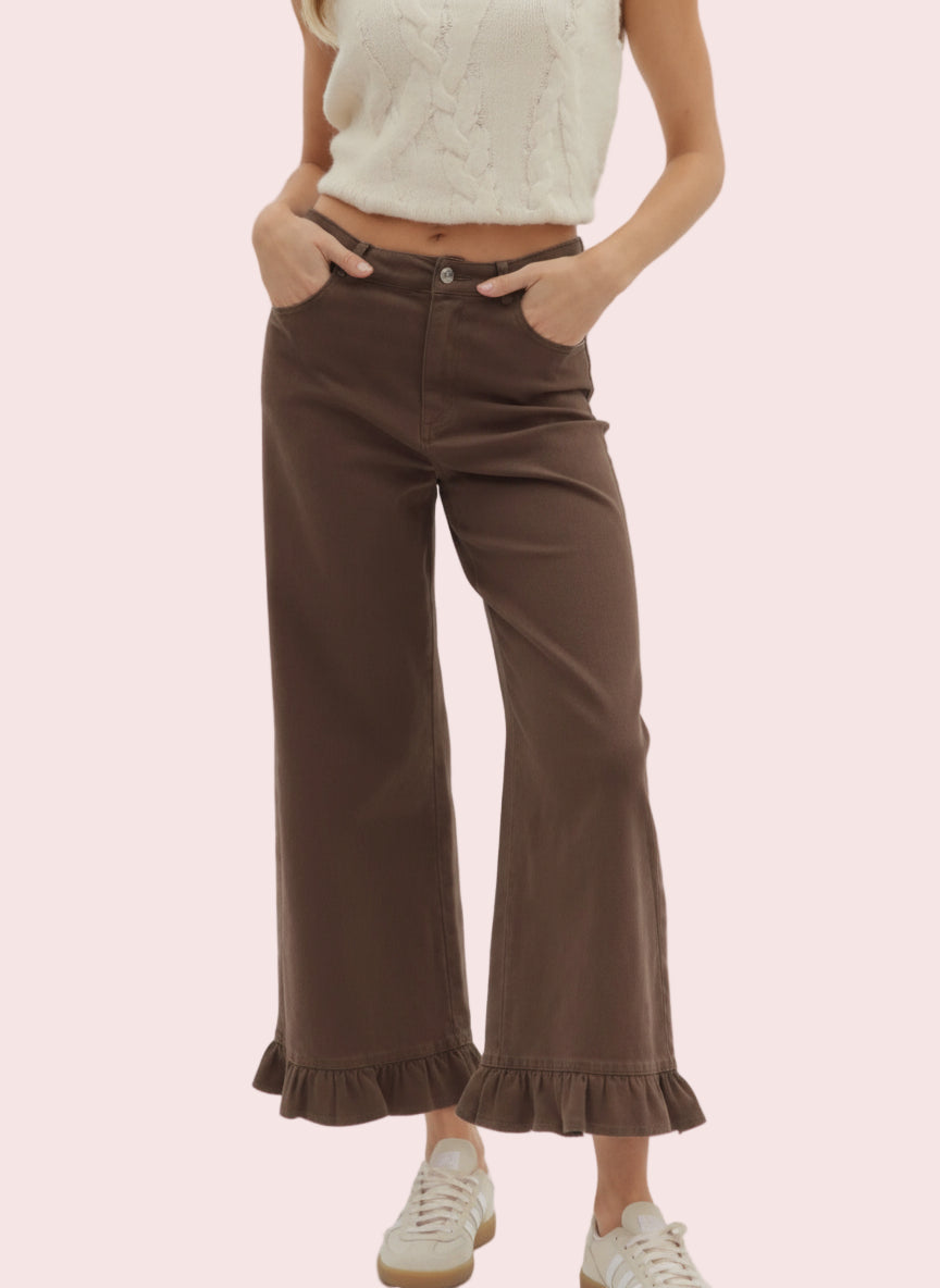 ENTRO BROWN WIDE LEG JEANS WITH RUFFLE HEM