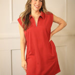 Celebrate with our SCHOOL SPIRIT MAROON POLO KNIT MINI DRESS. It features a zip-up collar, charming cap sleeves, a laid-back fit, and convenient pockets for all your essentials.