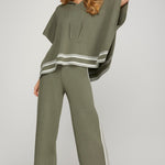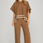 This RUNNING ERRANDS HOODED SWEATER TOP features a loose-fit with side openings secured with snap closures and a stylish striped hem. For a coordinated outfit, wear it with the matching pants and elevate your casual style effortlessly.