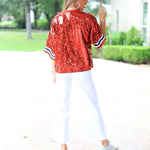 GAME DAY VIBES SEQUIN JERSEY - RED, WHITE OR BLUE
