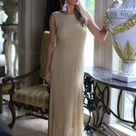 The CALL ME LOVELY SLEEVELESS SLIM LACE DRESS offers a refined sleeveless silhouette with a slim fit and maxi length. Featuring a graceful drop waist, delicate lace fabric, a low back, and a flowing full skirt, this dress embodies timeless elegance.