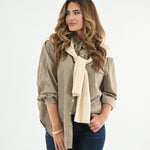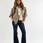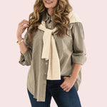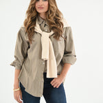 Elevate your style with the PREPPY CHARM STRIPED SHIRT WITH LAYERED SLEEVES. This mocha-colored button-down shirt combines a classic long sleeve design with a stylish faux layered sweater detail, adding depth and sophistication to your look. Perfect for a polished yet comfortable outfit.