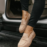 Meet your new everyday glam shoe, the STUD MUFFIN FAUX SUEDE LOAFERS. These studded loafers bring the perfect mix of polish and edge, with a soft suede finish that’s versatile enough for workdays or weekends. The chunky lug sole adds modern flair while keeping things comfy and practical for all-day wear. Pair them with jeans, trousers, or skirts—effortless chic just got easier.