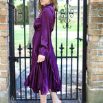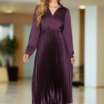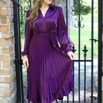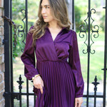 ELEGANT MOMENTS PLUM SATIN PLEATED DRESS