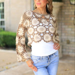 Bring on the carefree vibes with this CUE THE BOHO CROCHET CROP SWEATER in creamy taupe hues. Featuring a round neckline, cozy long sleeves, and charming scalloped edges, it’s the perfect playful piece to brighten your wardrobe.
