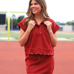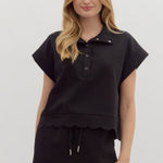CASUAL PARTY SCALLOP SNAP FRONT TOP - BLACK, BURGUNDY OR OLIVE