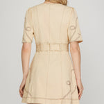 CASUAL UPGRADE TWILL BOOT STITCH EMBROIDERED MINI DRESS