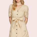 Add a fun twist to your closet with the ONLINE EXCLUSIVE CASUAL UPGRADE TWILL BOOT STITCH EMBROIDERED MINI DRESS. This playful mini dress features a flirty V-neck and a button-front that’s as easy to wear as it is to love. The belt nips you in at the waist for a flattering shape—and those charming boot stitch embroidery details? They bring a cheeky, unique flair that turns heads wherever you go. Whether you’re headed to brunch, a casual day out, or a night out dancing, this dress promises to keep your style fresh and full of personality.