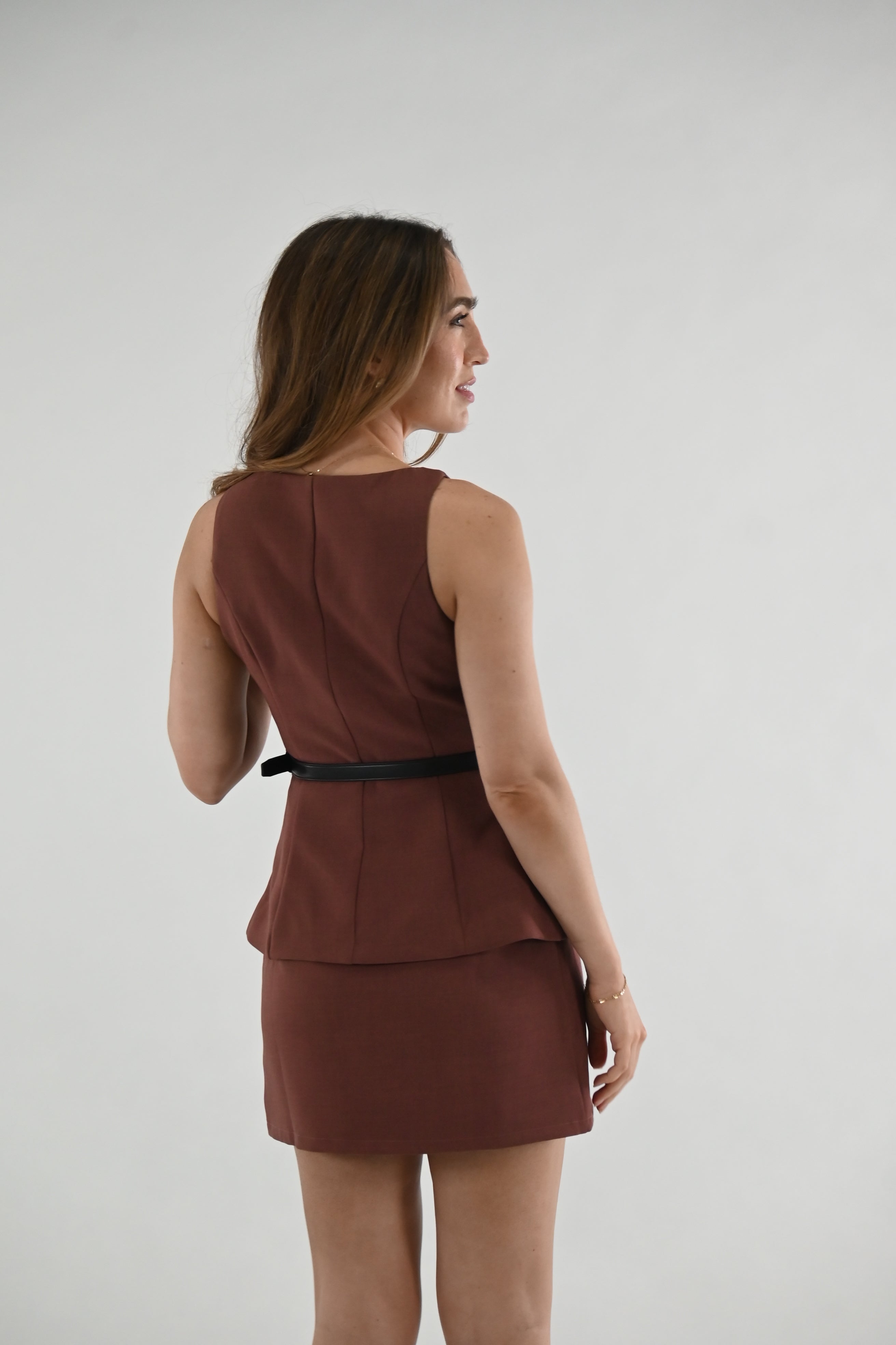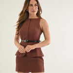 WHATEVER SHE WANTS BROWN SLEEVELESS TAILORED DRESS