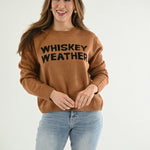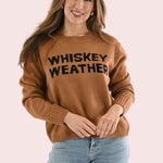 Embrace cozy style all season long with the WHISKEY WEATHER CARAMEL SWEATER. Designed for fall and winter, this women's caramel knit sweater features bold black "Whiskey Weather" embroidery, a comfortable ribbed crewneck, and long sleeves for a relaxed fit. Perfect for those who believe it's always the right time for whiskey and warmth.