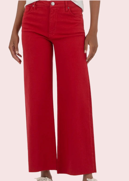 KUT MEG HIGH RISE WIDE LEG JEANS IN RED
