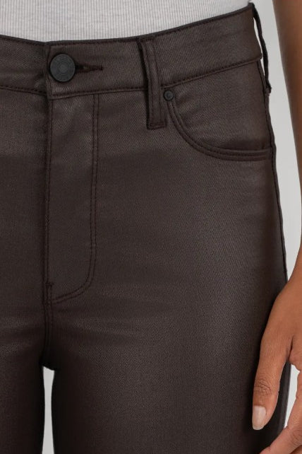 KUT ANA COATED HIGH RISE FLARE JEANS IN CHOCOLATE BROWN