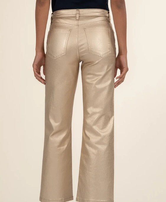 KUT CHARLOTTE HIGH RISE WIDE LEG JEANS IN GOLD