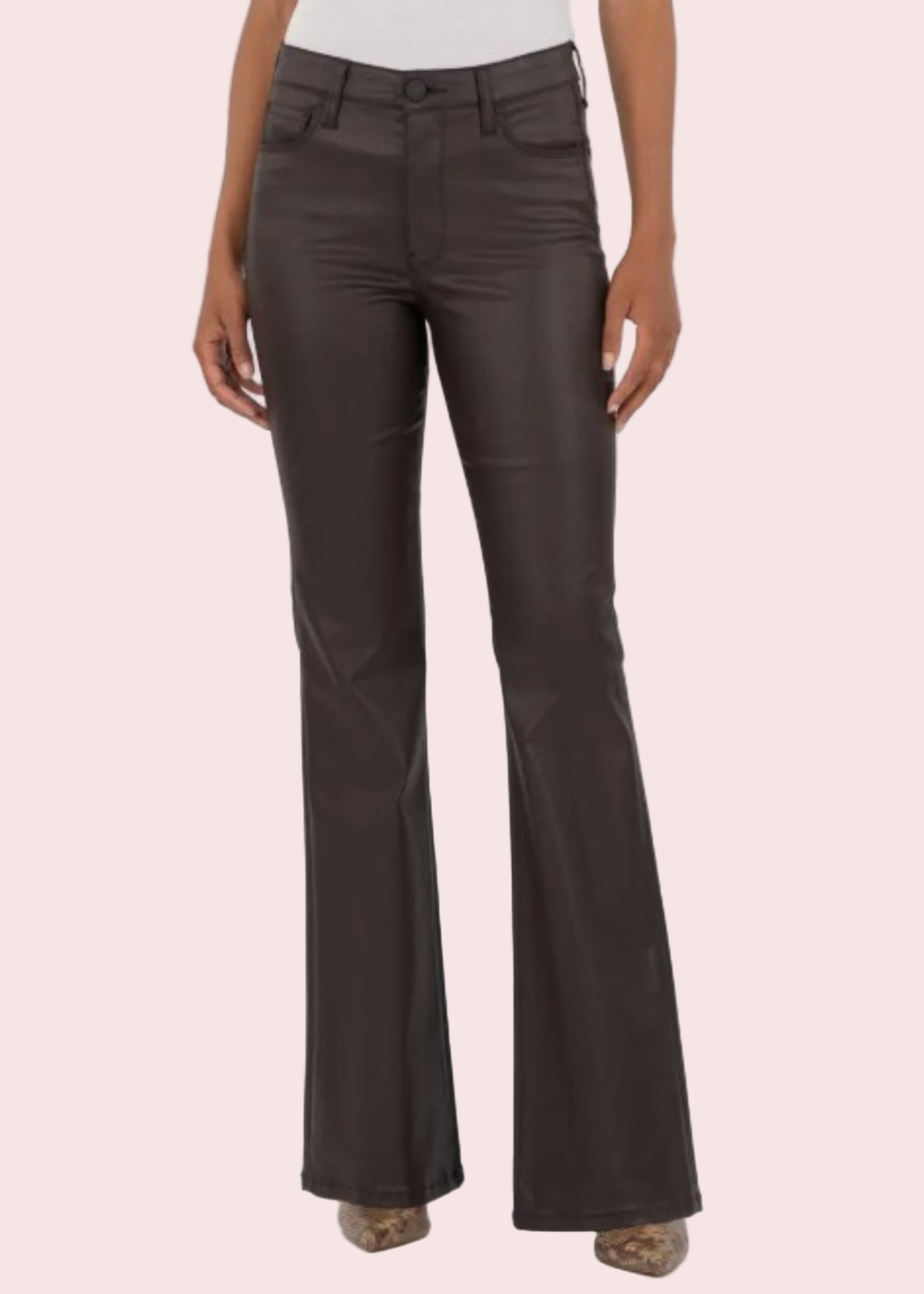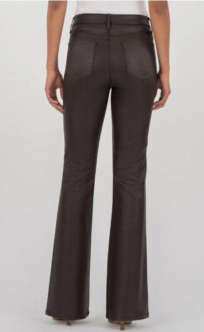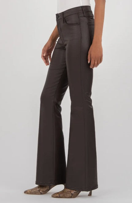 KUT ANA COATED HIGH RISE FLARE JEANS IN CHOCOLATE BROWN