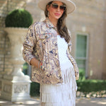 Make a statement with the WOODLAND WALKS QUILTED JACKET, featuring a lively floral print, fun contrast piping, handy front flap pockets, and a classic button-down design.
