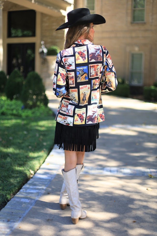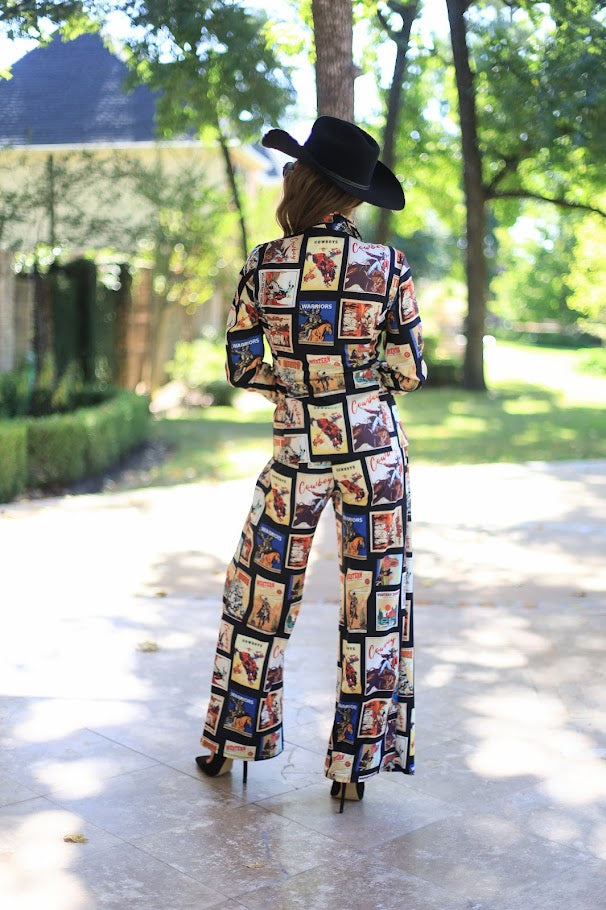 ONLINE EXCLUSIVE: RODEO BOUND WESTERN COWBOY GRAPHIC PRINT BLAZER