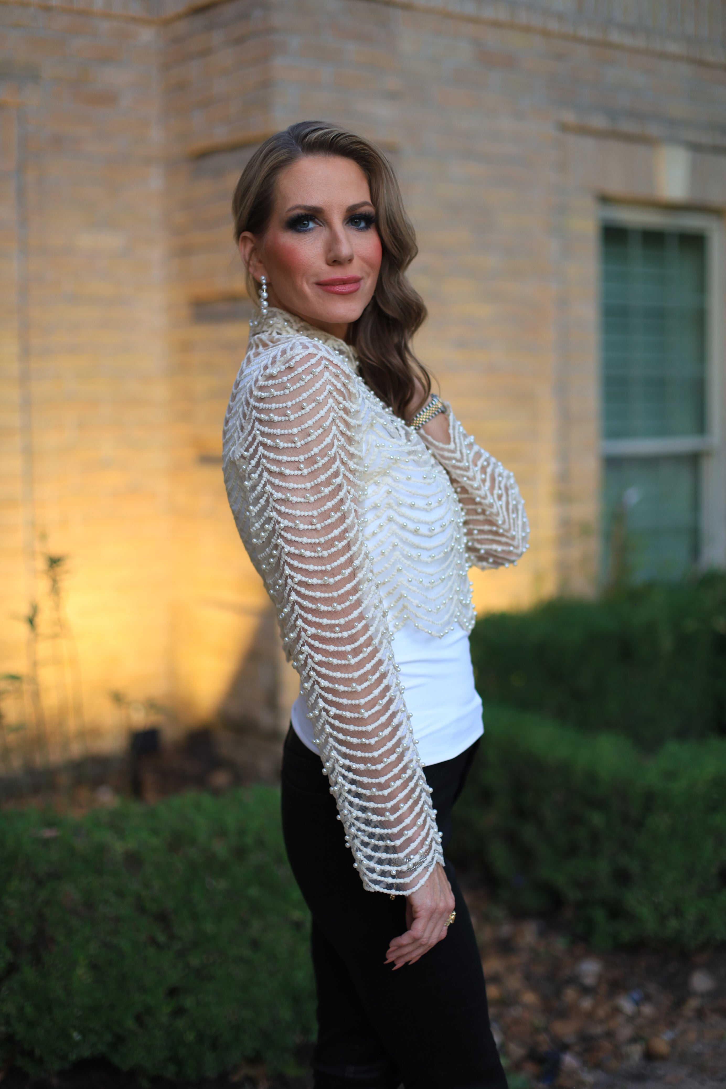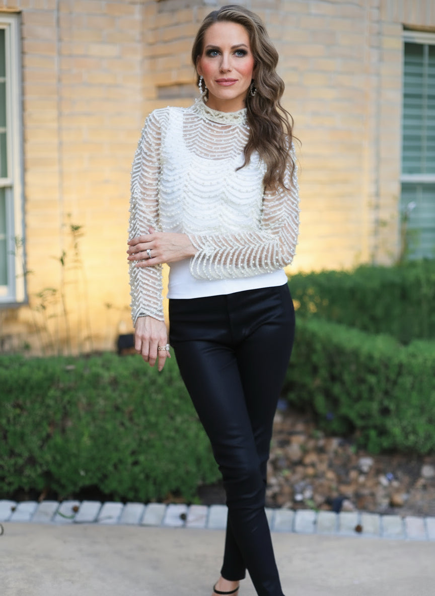 ONLINE EXCLUSIVE: COCKTAIL HOUR PEARL EMBELLISHED TOP - BLACK OR IVORY