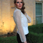Designed for the woman who demands elegance, this COCKTAIL HOUR PEARL EMBELLISHED TOP features pearl embellishments artfully distributed across its surface for a refined, luminous effect. The long sleeves provide graceful coverage, while the scalloped hem adds a touch of feminine sophistication. A back zipper ensures effortless styling for your most important evenings. Whether attending a celebrations or upscale gatherings, this piece delivers timeless allure and understated luxury that transcends fleeting trends.