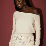 Elevate your wardrobe with this stunning cream SWEET POETRY ONE SHOULDER METALLIC DETAIL SWEATER that effortlessly blends sophistication and playful glamour. Featuring an eye-catching one-shoulder silhouette and delicate sequin embellishments, this piece transitions seamlessly from casual gatherings to evening events. The long sleeves and round neckline create a flattering, versatile fit that works with your existing style. Perfect for anyone seeking a statement piece that feels both elegant and fun.