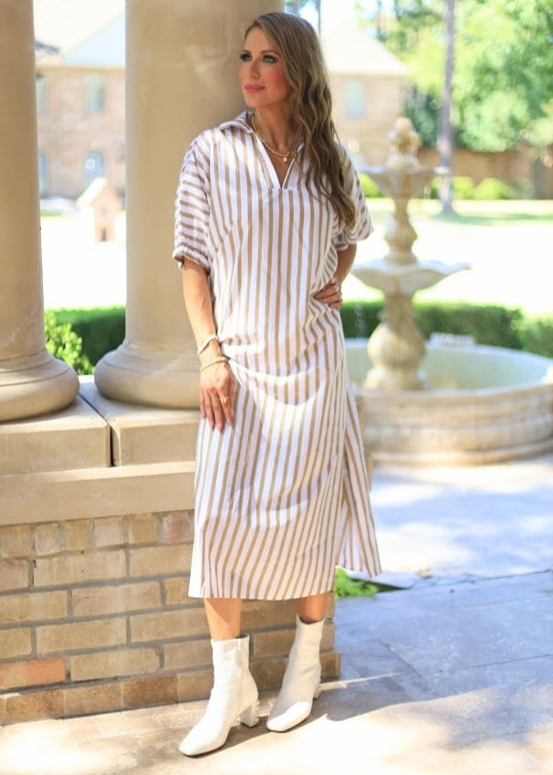 ONLINE EXCLUSIVE: SWEET AND GENTLE COTTON MIDI DRESS - BROWN STRIPE