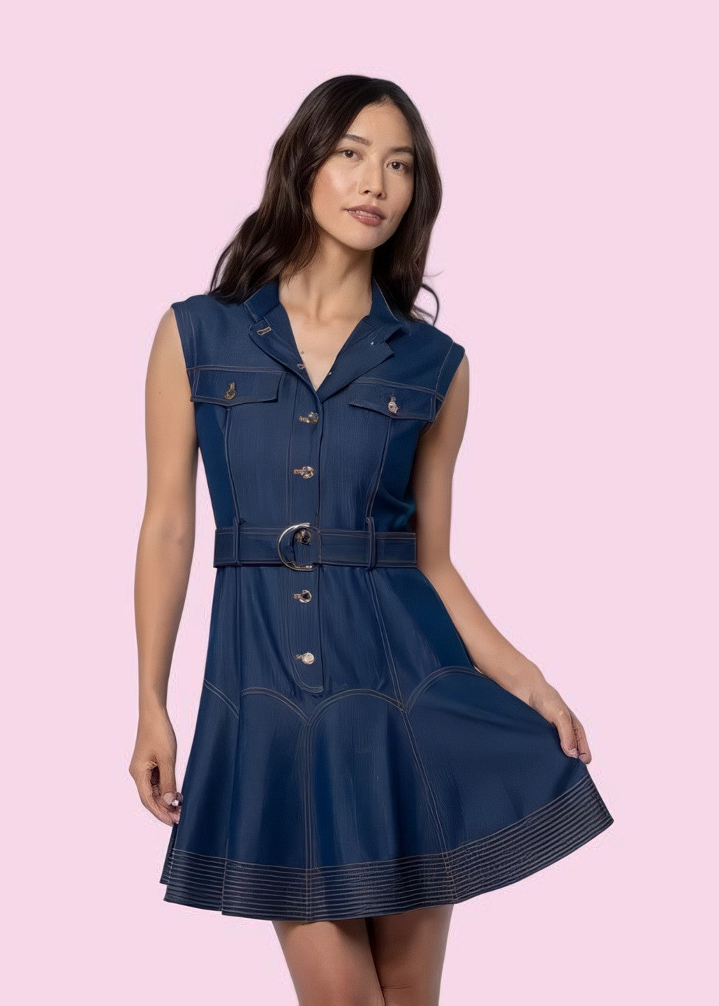 CASUAL UPGRADE TWILL BOOT STITCH EMBROIDERED MINI DRESS