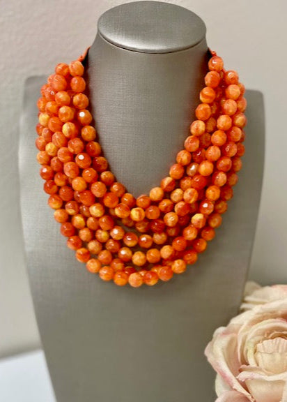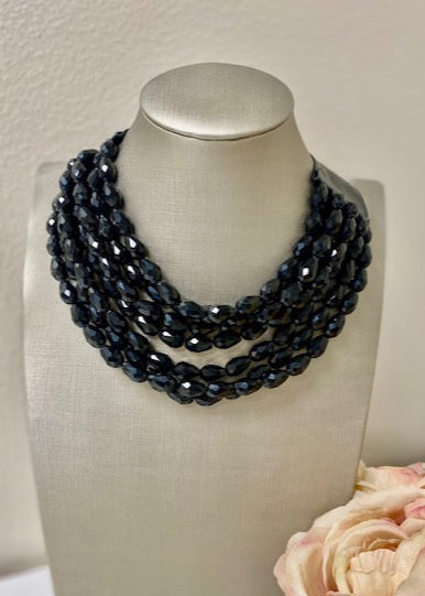 Indulge in the luxurious charm of the HEART & SOUL MULTI-STRAND BEADED NECKLACE. This exquisite necklace boasts multiple strands adorned with 12mm matte resin beads, placed delicately upon a faux leather collar. Experience the perfect fit with the adjustable magnetic closure, adding an air of exclusivity to this already sophisticated piece.