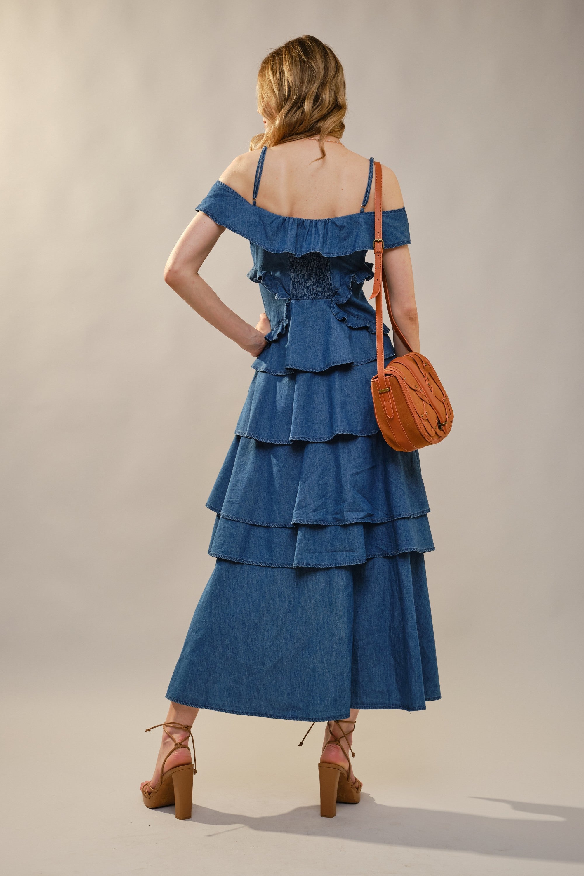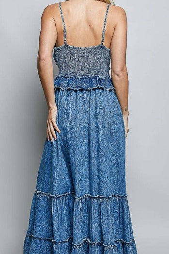 EVENING CHARM TEIRED DENIM DRESS